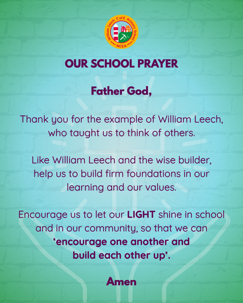 Collective Worship plays a central role at William Leech, modelling our Christian ethos and